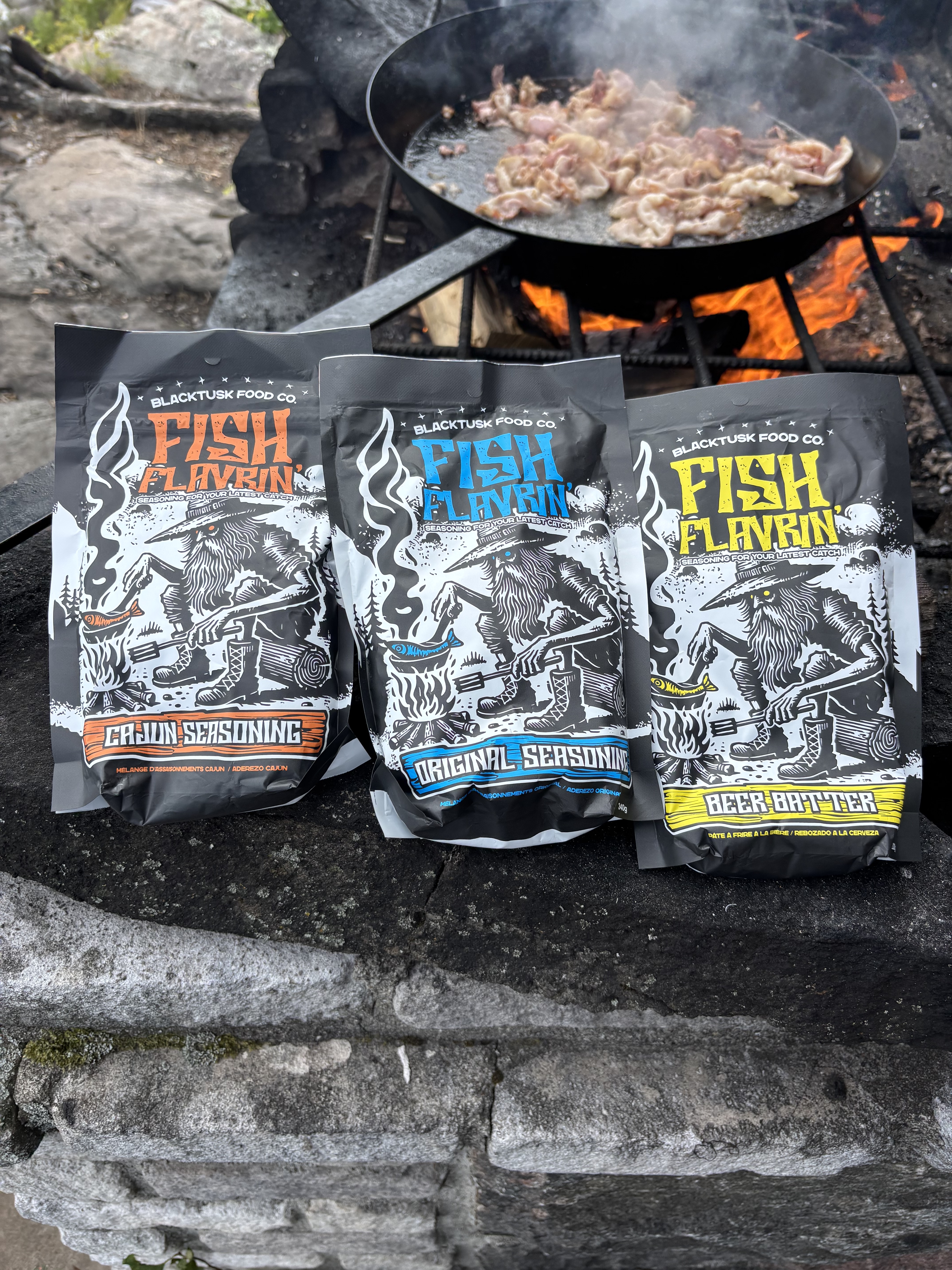 Fish Flavrin’ is our no-nonsense line of seasoning blends and batters made for folks who cook their catch right. Whether you're lakeside with a cast iron pan or deep-frying in the backyard, we've got you covered. Coming in five bold flavors including crispy Beer Batter and spicy Cajun Seasoning, Fish Flavrin’ brings big taste to every filet, fillet, or finger-lickin’ fish fry. No fluff, just fire, salt, and the good stuff.